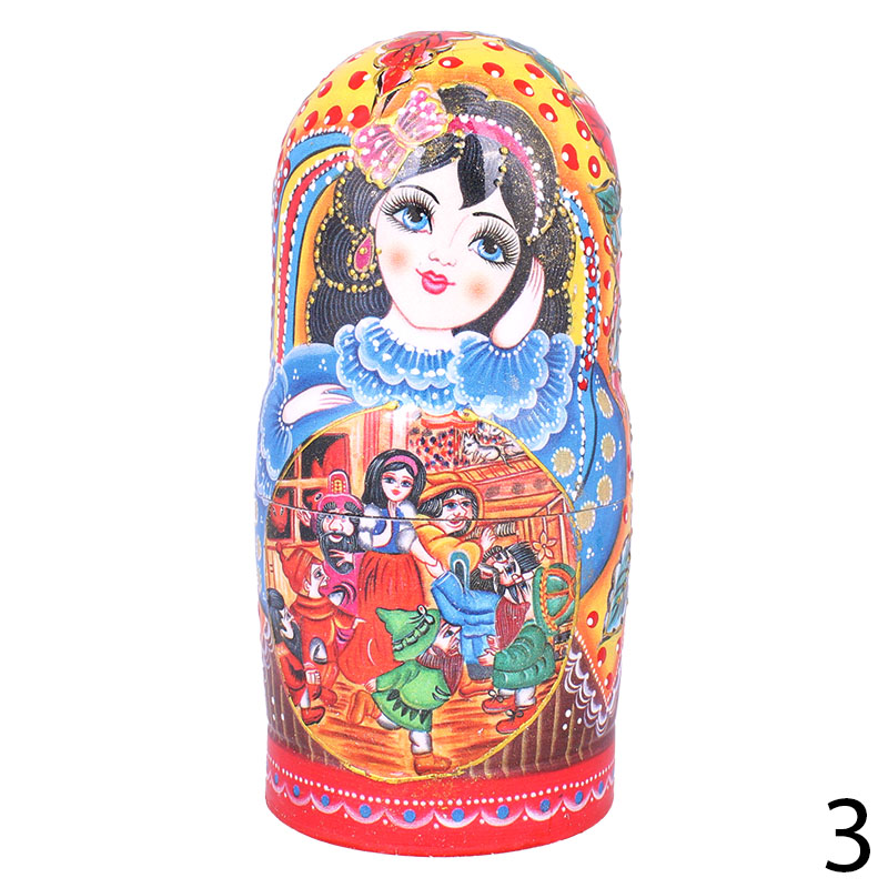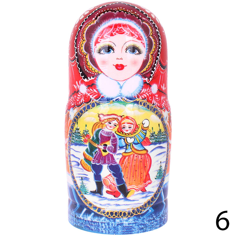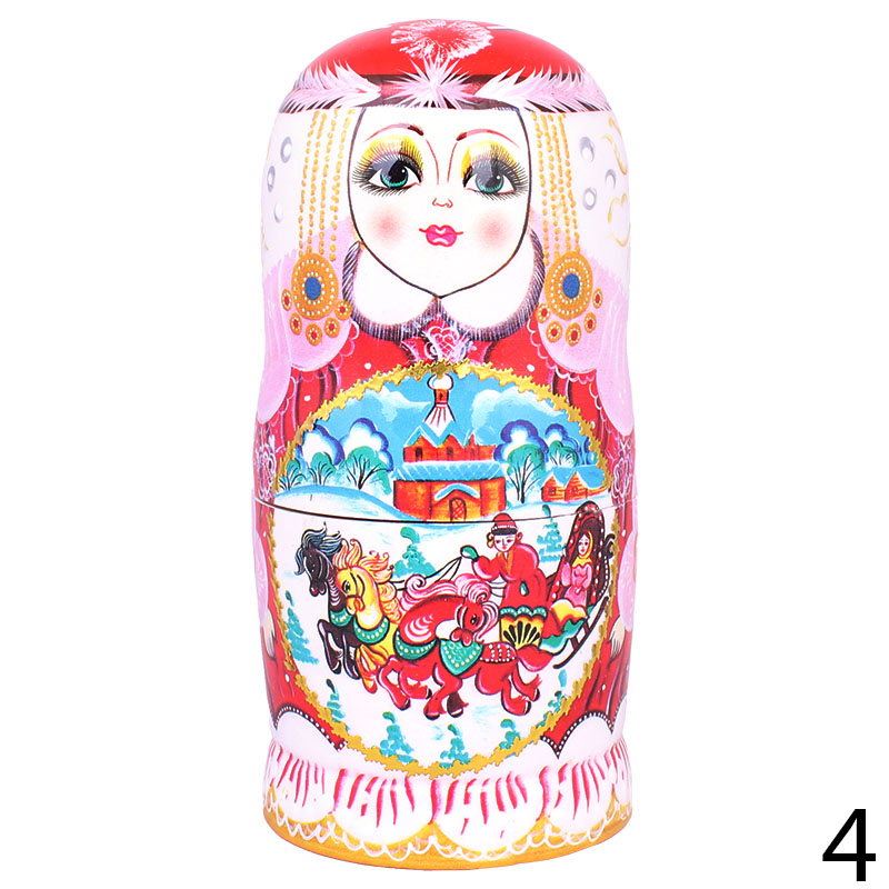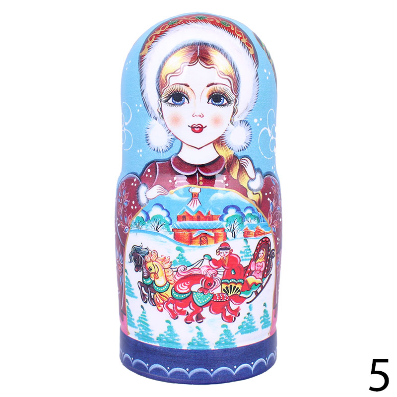 Matrioșke rusești de calitate, goale în interior, pictate manual, realizate din lemn și așezate una în alta, în număr de 10 bucăți. Înălțimea matrioștelor variază între 1,2 cm și 20 cm. Matrioșka rusească clasică din lemn este potrivită ca obiect decorativ, suvenir, pentru colecționari sau ca jucărie. Nu este potrivită pentru copiii sub 3 ani din cauza riscului de înghițire a celei mai mici piese. O decorațiune ideală din lemn pentru raft.