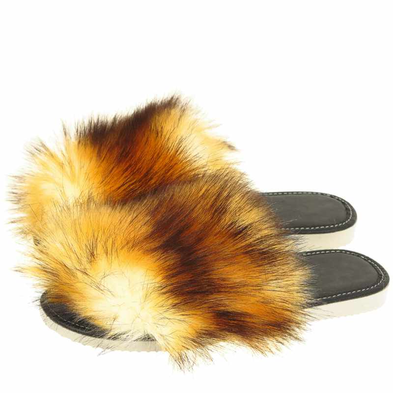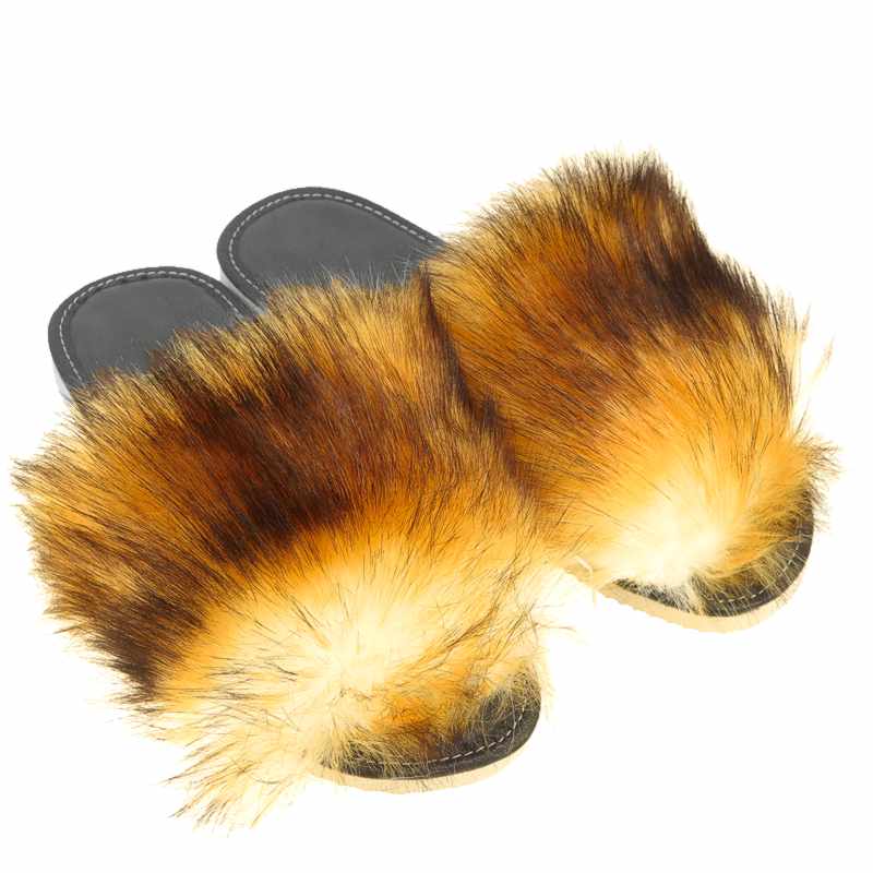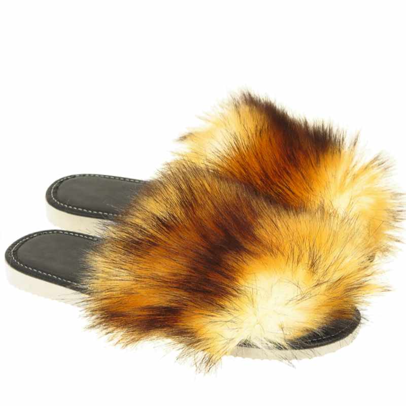 Descriere: Șlapii eleganți pentru femei cu imitație de blană de vulpe sunt potriviți pentru interior pe tot parcursul anului. Sau, de asemenea, ca încălțăminte aerisită de vară pentru sezonul cald, deoarece acești șlapi sunt cu vârful deschis. O încălțăminte frumoasă și elegantă care cu siguranță va impresiona toată lumea. Partea superioară este din imitație de blană, plăcută la atingere. Talpa este mai degrabă tare, dar flexibilă, antiderapantă, într-o nuanță deschisă. Șlapii pufoși cu vârful deschis sunt perfecți pentru a fi purtați acasă. Un cadou minunat pentru o femeie.
