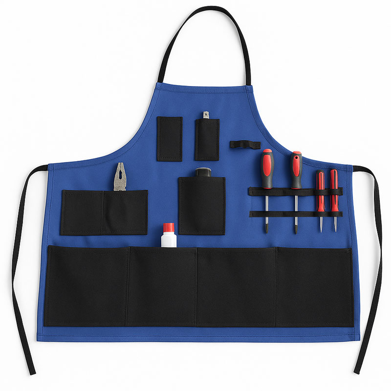 dacă considerați că numeroasele buzunare de pe șorț sunt inutile și nepractice din cauza pătrunderii rumegușului, a așchiilor de oțel și a altor deșeuri industriale, sau că a purta atât de multe unelte pe un șorț este chiar nepractic și limitativ în mișcare, atunci avem o soluție practică pentru dvs., purtați șorțul invers, adică cu buzunarele lipite de corp, șorțul fără buzunare.