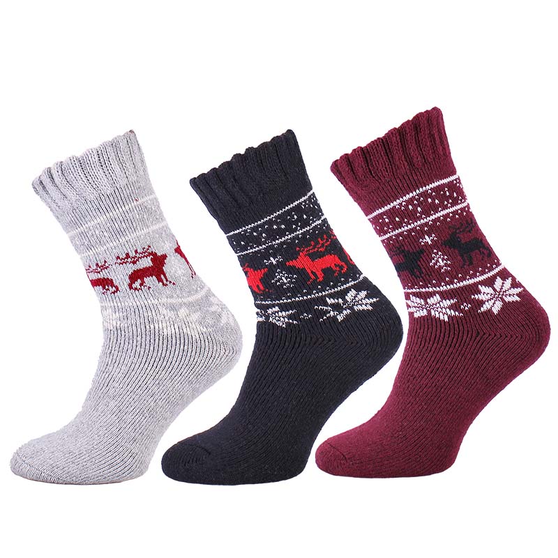 Șosete calde, confortabile și de calitate pentru damă. Aceste șosete au un elastic mai larg, astfel încât nu strâng picioarele în timpul purtării. Pachetul conține 3 perechi. Sunt fabricate din lână cu un adaos mic de bumbac și acril. Pe partea exterioară sunt plăcute la atingere. Pe partea interioară reacționează plăcut la contactul cu pielea.