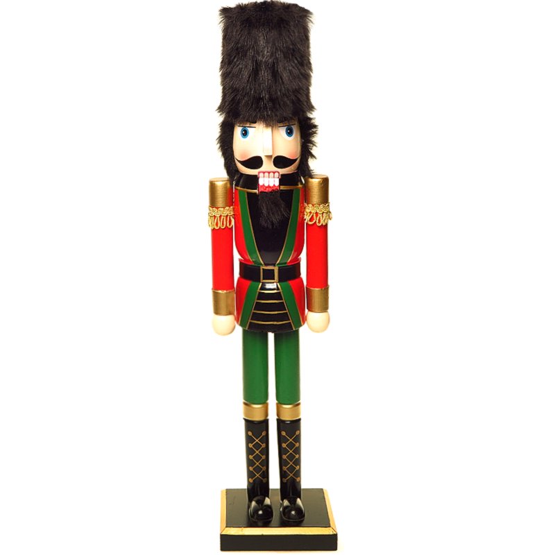 Descriere: Soldatul Spărgător de nuci din lemn vopsit de 60cm este un ornament de Crăciun ideal pentru apartament. Spărgătorul de nuci îmbrăcat ca un soldat va spori atmosfera celor mai frumoase sărbători și este, de asemenea, potrivit ca un cadou. Spărgătorul de nuci original avea forma unui rege, soldat, miner sau pădurar în diferite uniforme și dimensiuni, uneori depășind jumătate de metru, și era folosit pentru spargerea nucilor.
