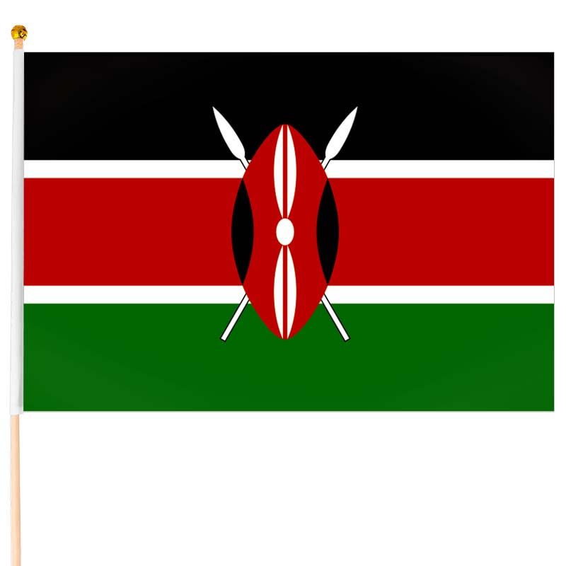 Steagul este montat pe o tijă din lemn de 61 cm și este confecționat din poliester rezistent. Poate fi folosit ca decor acasă, la birou sau ca simbol de susținere a echipei naționale. Culorile steagului Kenyei au semnificații puternice: negrul reprezintă populația țării, roșul simbolizează sângele vărsat în lupta pentru independență, verdele indică fertilitatea solului, iar albul reprezintă pacea.