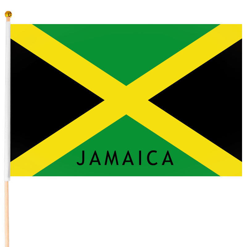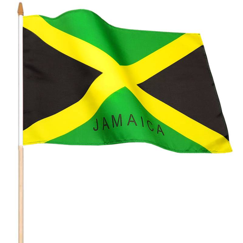 Descriere: Steagul Jamaicăi - câmpul steagului este împărțit de o cruce diagonală în patru triunghiuri, triunghiurile de sus și de jos sunt verzi, iar triunghiurile din stânga și din dreapta sunt negre. Culoarea galbenă este menită să simbolizeze frumusețea soarelui și bogățiile minerale găsite pe insulă, verdele simbolizează speranța și agricultura, iar negrul simbolizează opresiunea poporului și povara grea a lipsei de libertate pe care a trebuit să o suporte în trecut.