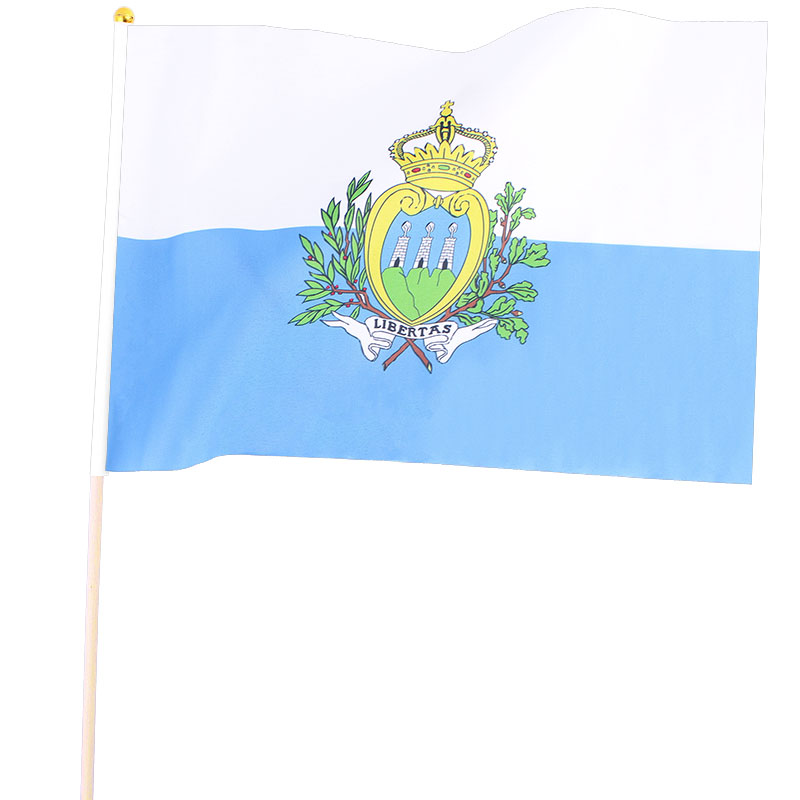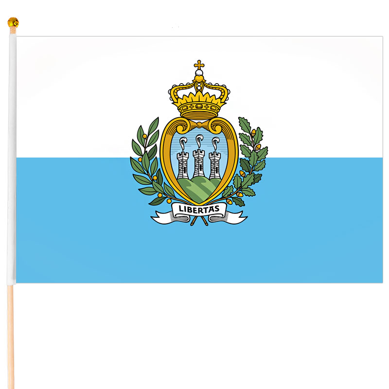 Steagul național al San Marino a fost adoptat oficial la 6 aprilie 1862. Drapelul național al Republicii San Marino conține două benzi orizontale egale de culoare albă (sus) și albastru deschis, cu stema națională suprapusă în centru. Culorile principale ale steagului sunt considerate a fi derivate din scutul stemei naționale. Culoarea albă simbolizează pacea și reprezintă, de asemenea, zăpada care acoperă Muntele Titano, care este cel mai înalt punct din San Marino. Culoarea albastră este un simbol al cerului și semnifică, de asemenea, libertatea. Steagul are un raport lățime/lungime de 3:4. Steagul este montat pe un stâlp de 61 cm lungime și este acoperit cu o bilă aurie din plastic. Pentru producerea steagului s-a folosit poliester. Steagul este potrivit ca o decorațiune pentru locuință, afaceri sau ca un simbol în timpul evenimentelor sportive.