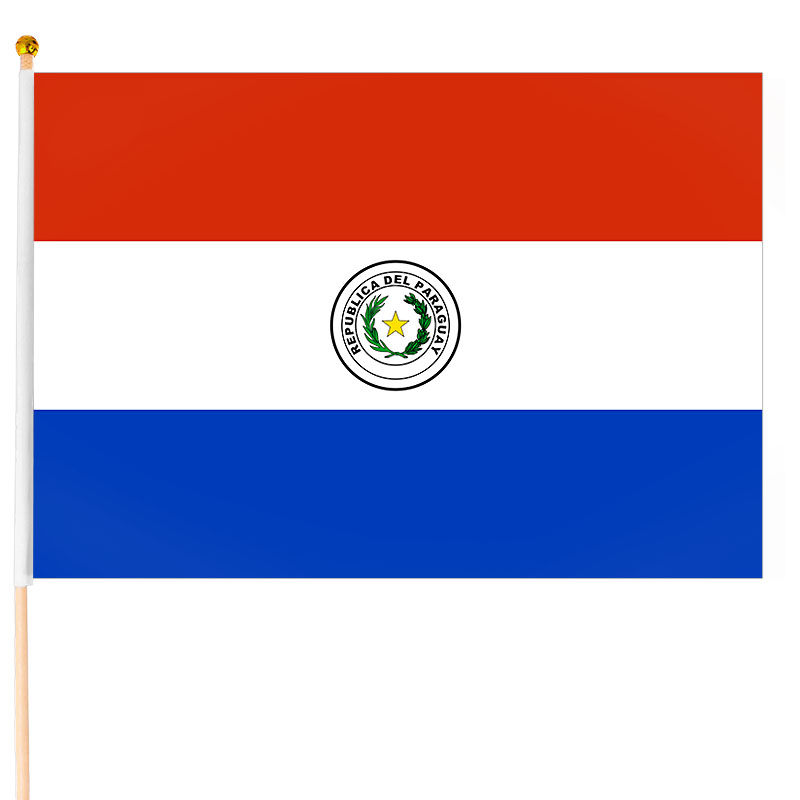 Steagul Paraguayului este format din dungi roșii, albe și albastre, cu inscripția „REPUBLICA DEL PARAGUAY” în centru. Dunga roșie de pe steag simbolizează patriotismul, curajul, egalitatea și justiția. Dunga albastră reprezintă bunătatea, libertatea, iar dunga albă pacea și puritatea gândirii. Acest steag este atașat de un stâlp din lemn, care este acoperit cu un vârf din plastic. Steagul a fost fabricat din poliester 100%.
