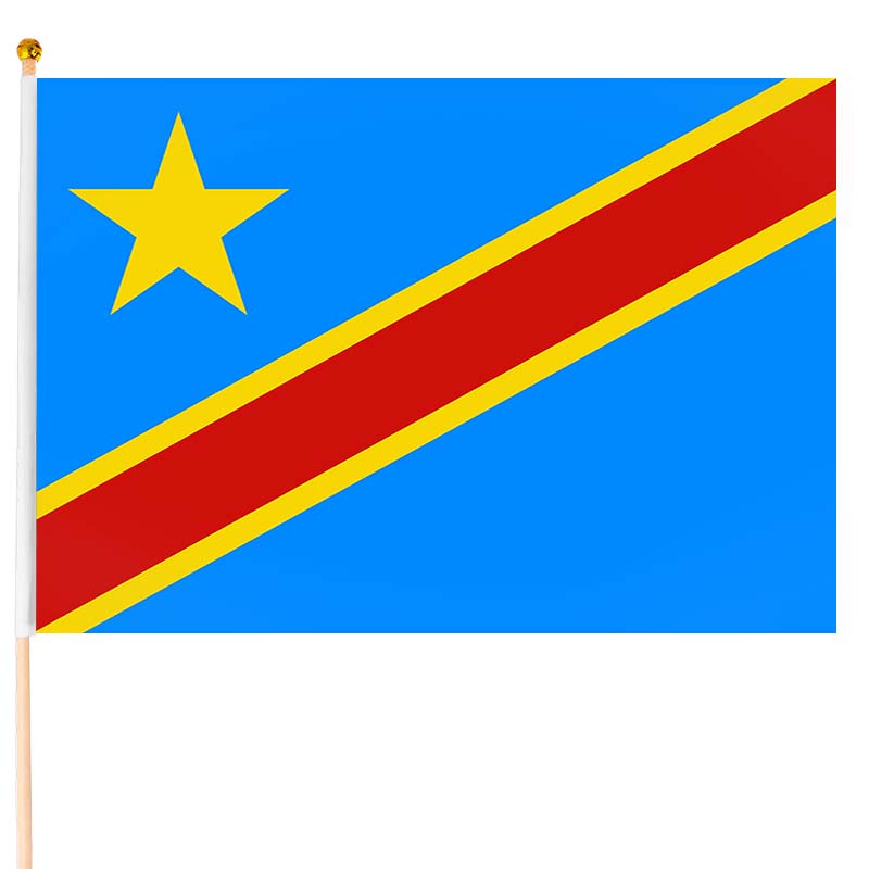 Steagul este fixat pe o tijă din lemn de 61 cm și confecționat din poliester rezistent. Poate fi folosit ca decor pentru locuință, spații comerciale sau ca simbol de susținere a echipei naționale. Steagul Republicii Democrate Congo este alcătuit din culorile albastru, galben și roșu, având o stea în colțul stânga sus. Roșul simbolizează sângele martirilor țării, galbenul reprezintă bogăția, iar albastrul semnifică pacea. Steaua este un semn al prosperității viitoare.