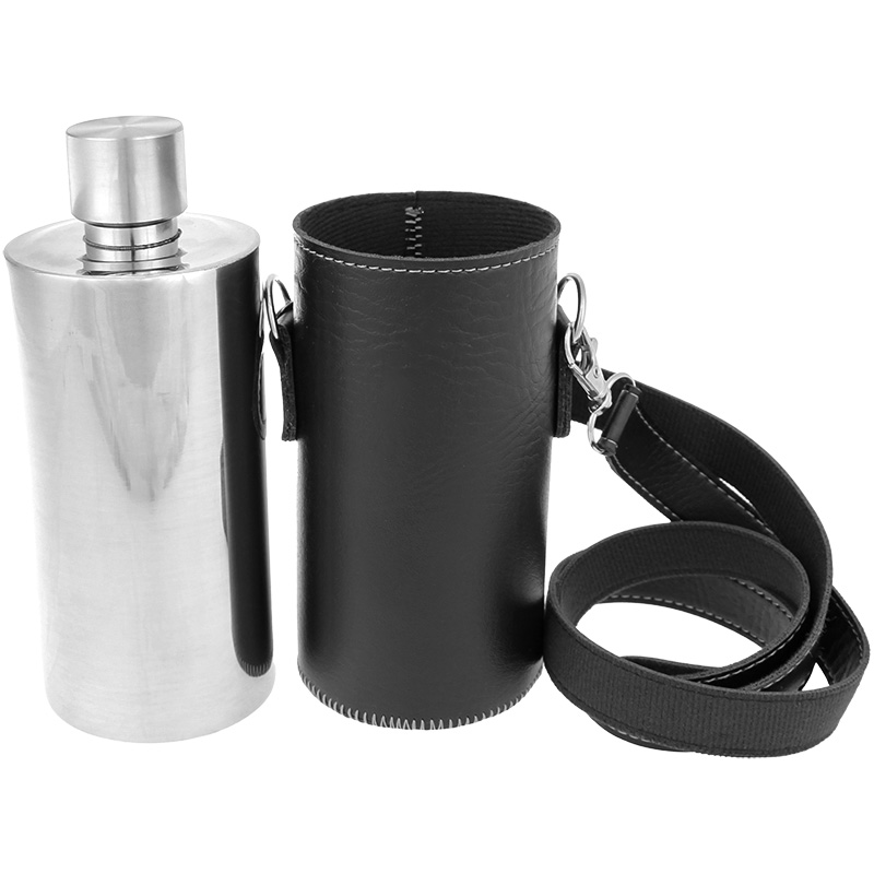 Husa elegantă din piele ecologică oferă produsului un aspect luxos și, în același timp, protejează plosca împotriva deteriorării. Un avantaj îl reprezintă husa și cureaua detașabile, datorită cărora poate fi purtată comod pe umăr sau scoasă cu ușurință și depozitată într-un rucsac ori geantă.