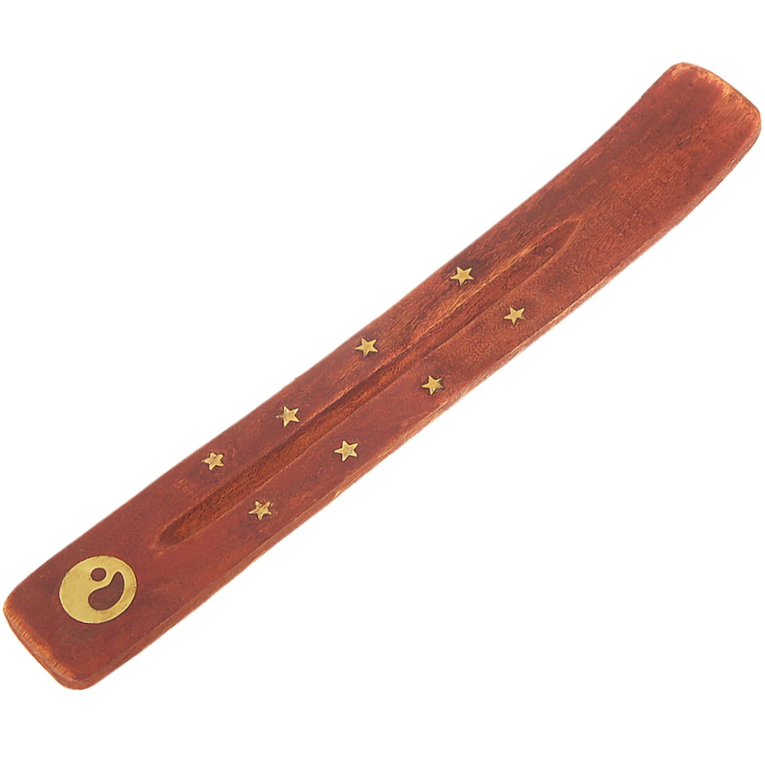 Acest suport pentru bețișoare parfumate de apartament, casă sau cabană este potrivit pentru toate bețișoarele parfumate de înaltă calitate. Suportul este realizat din lemn cu un motiv Jing Yang și stele din alamă pe suprafață. Bețișorul parfumat se introduce într-o gaură situată în partea îndoită a suportului din lemn. Suportul servește, de asemenea, ca un recipient pentru cenușa produsă de fumegarea bețișorului.