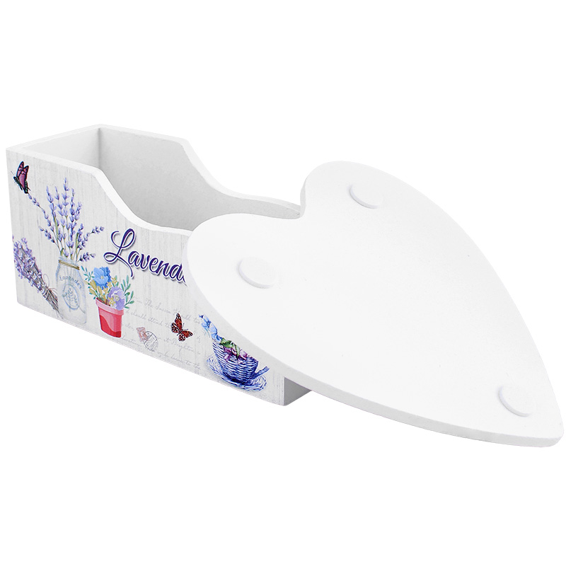Descriere: Aduceți stilul provensal la viață cu aceste minunate suporturi de pahare în formă de inimioară. Aceste suporturi de pahare din lemn vin într-un set de 6, fiecare prezentând un motiv diferit. Cea mai comună caracteristică a acestor suporturi de pahare este un buchet de lavandă, precum și alte elemente vizuale pe un fundal alb de lemn, tipic stilului vintage. Pe partea inferioară a suporturilor se află picioare din spumă care asigură o frecare sporită pe masă, esențială pentru stabilitatea crescută a suporturilor și, implicit, a paharului sau a cănii. Suporturile vin cu un stand din lemn asortat pentru o depozitare, scoatere și organizare mai ușoară a acestora. Aceste minunate accesorii de bucătărie vintage, cu un motiv de lavandă în stil provensal, vor surprinde toți oaspeții, membrii familiei și cunoscuții cu designul lor de bun gust, adaptat stilului vintage și retro.
