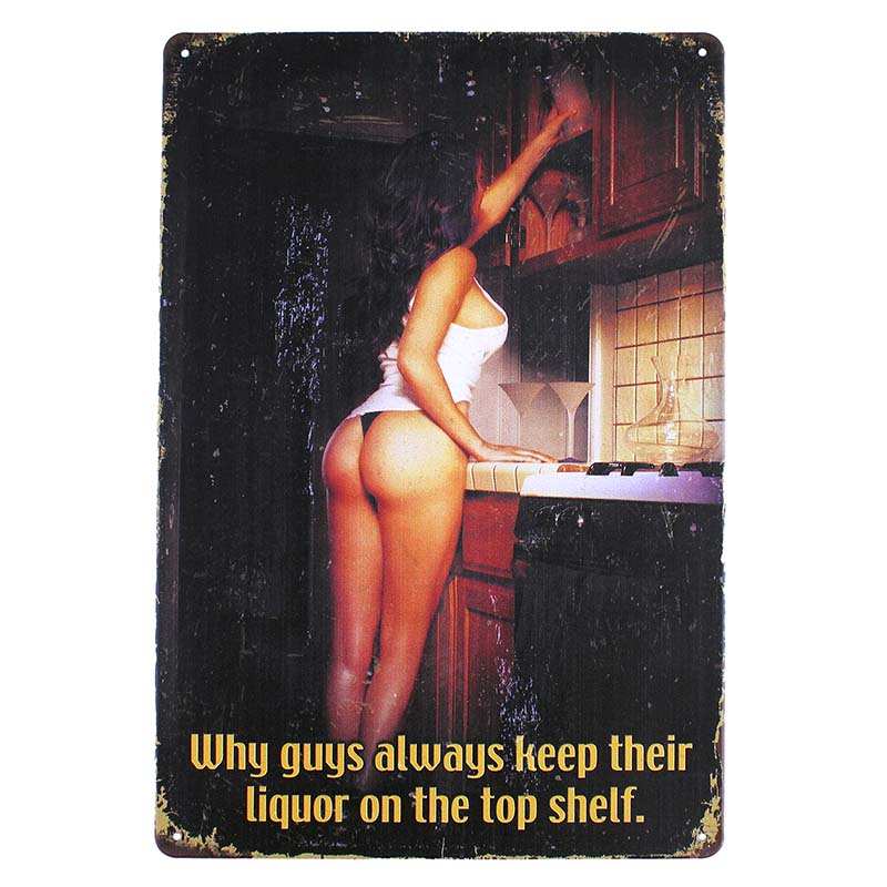 Introducere » Decorațiuni pentru apartament » Tablă retro » Tablă metalică, Alcool pe raftul de sus, 20x30cm