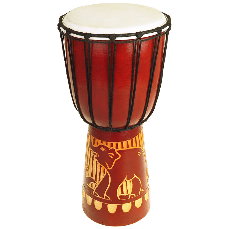 Descriere: Toba bongo de foarte bună calitate este realizată dintr-o singură bucată de lemn cu modele frumoase sculptate în roșu și negru. Bongoul are desene frumoase, sculptate manual, reprezentând un elefant. Deoarece aceasta este o tobă djembe făcută manual, precum și modelele sculptate manual pe această tobă, motivele nu sunt întotdeauna sculptate exact geometric, ceea ce nu face decât să se adauge originalității și unicității fiecărei piese care este disponibilă.