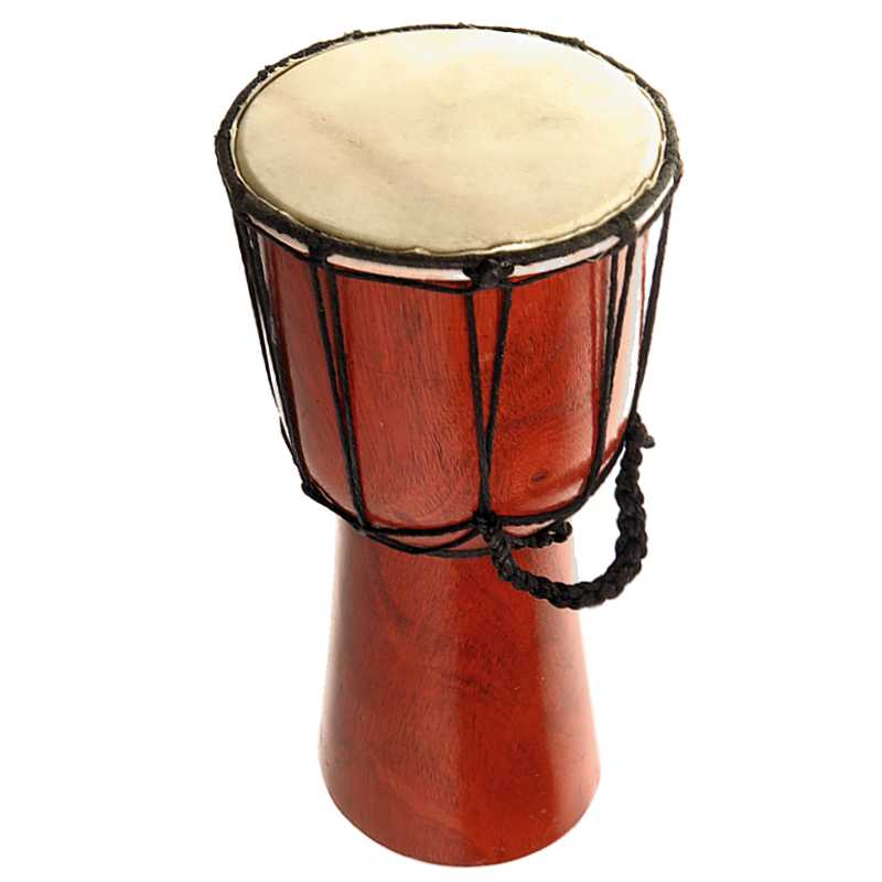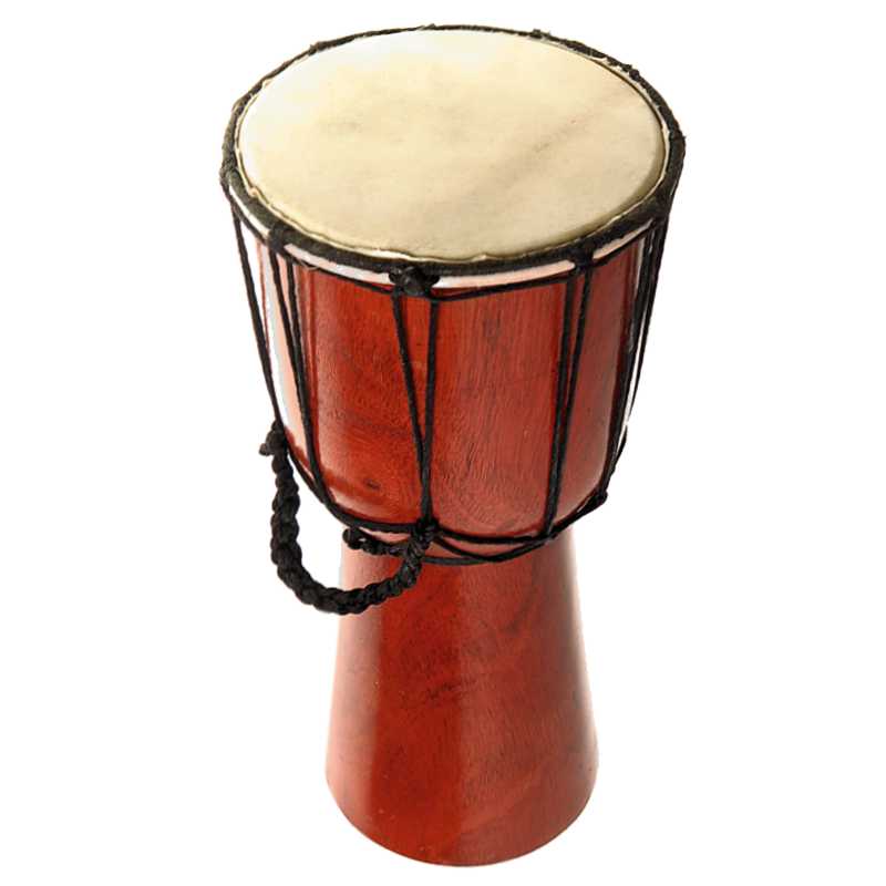 specificație: Djembe-ul este o tobă cu un singur cap, în formă de cupă, care are corpul dintr-o singură bucată de lemn și vârful acoperit cu membrană întinsă, toba se introduce între genunchi și se cântă cu palmele și degetele