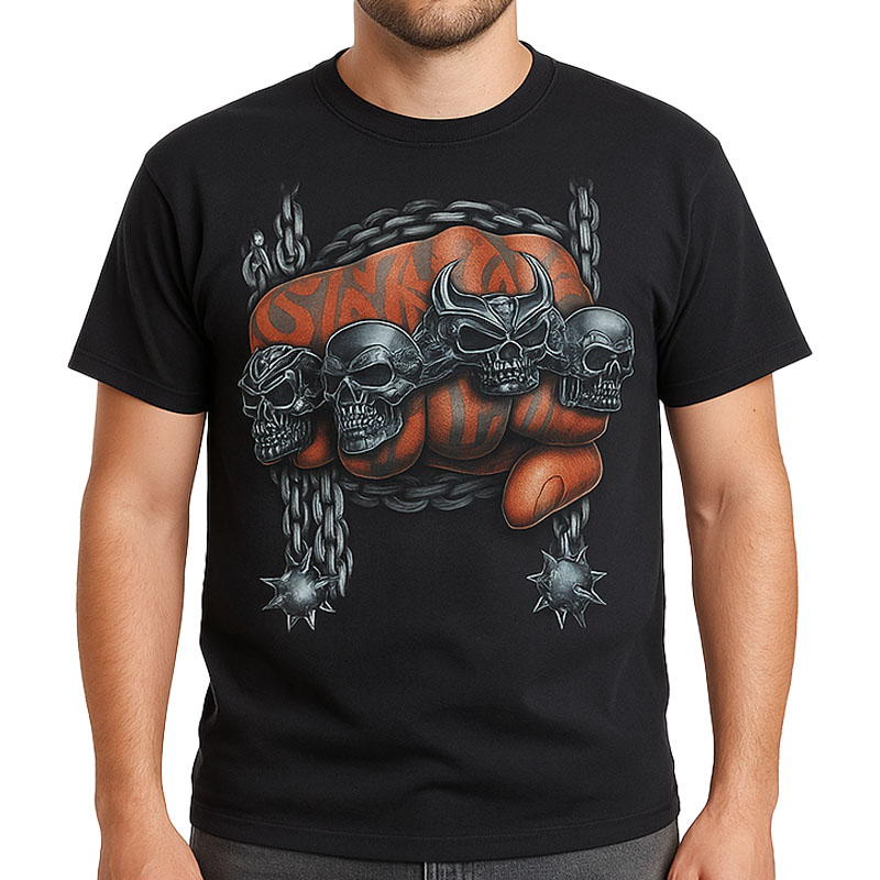 specificație: tricou negru din bumbac cu imprimeu al unui pumn înarmat pe partea din față a tricoului, tricou popular potrivit pentru rockeri, motocicliști, pentru diverse jocuri tactice, airsoft, paintball, potrivit și pentru purtare normală