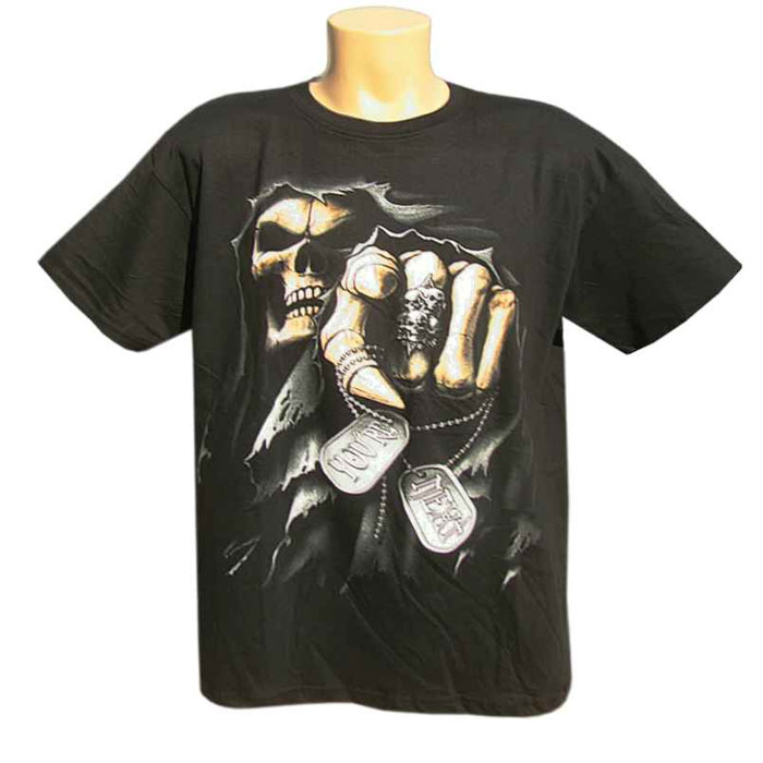 specificație: tricou negru din bumbac, în față cu imprimeu al unui pumn înarmat al unui schelet și inscripția YOU'RE NEXT, tricou popular, potrivit pentru rockeri, motocicliști și pentru diverse jocuri tactice, airsoft, paintball, sau purtare zilnică, a se spăla la 40°C