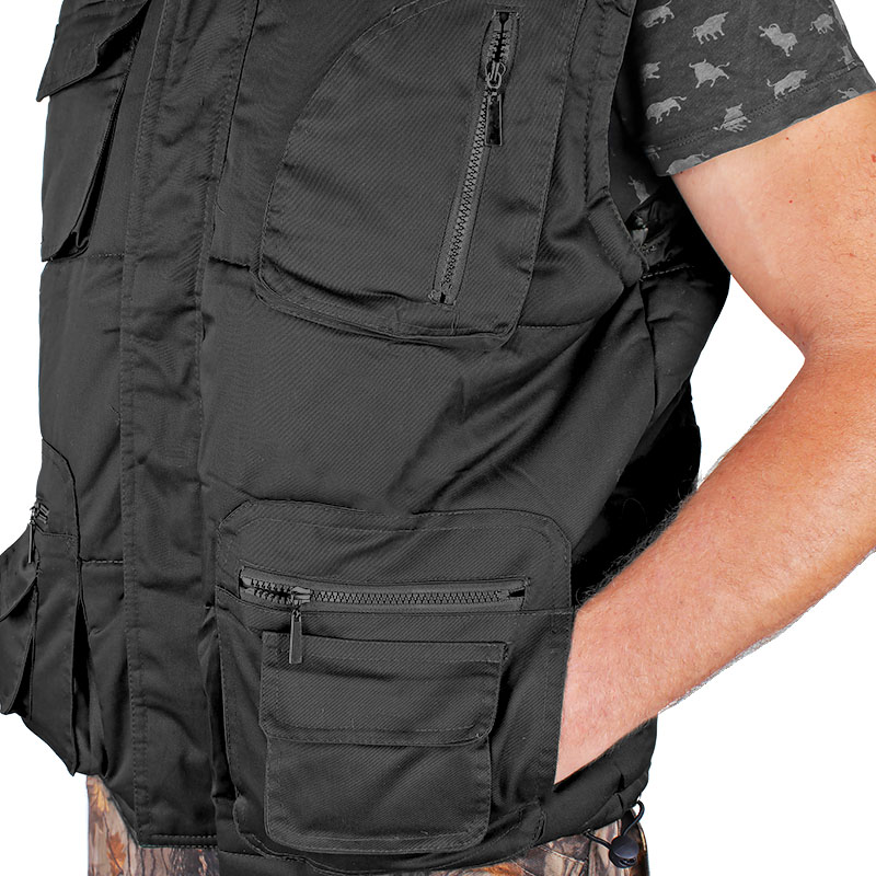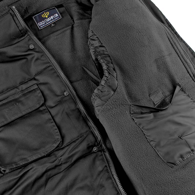 specificație: vestă izolată pentru bărbați cu închidere cu fermoar, glugă detașabilă cu fermoar, vestă potrivită pentru activități recreative sau ca vestă de lucru pentru pază pe vreme rece, 2 buzunare mari frontale inferioare cu închidere cu fermoar, 2 buzunare frontale inferioare cu închidere cu arici, 2 buzunare pe piept, 1 buzunar interior, șnur în partea de jos a vestei.